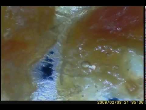 Alun video on mikroskooppikuvaa hyvin pienestä palasta korvavaikkua jonka kuivatin. Se on vahaa, mutta minun vahaani. (Siinä on omituinen päiväys, mutta mikroskooppini joka muutoin on mainio on hyvin omituinen tuon kellonsa kanssa. Enkä osaa muuttaa sen aikaa. Joten olkoot. Kuva on kuitenkin tuore.) Intiaaneilla ja inuiiteilla on usein kuiva korvavaha ja eurooppalaisilla on yleensä kostea ja vahamainen korvavaha. Minun korvavahani on eurooppalainen mutantti joka kiteytyy piikeiksi. Vahallani on jostain syystä tapana kuivaa korvaan teräviksi säleiksi ja eräässä vaiheessa itse asiassa näkeekin miten se on kristalloitunut. Tämä toki kannustaa puhdistamaan korvat melko usein. Ja ne ovatkin hyvin hoidetut. (Joskin olen kerran joutunut käymään korvien tyhjentämisessä joka ei ollut miellyttävä kokemus.) Sillä jos asia unohtuu, saan kyllä korvasyyhyä. Olen pitänyt tätä tyhmänä asiana. En ole aikaisemmin tiennyt että tämä piirre olisi myös kaunis. Minusta se kiteytynyt osa on varsin esteettinen. Maailmassa on muutakin korvavahaa mutta tuo on minun korvia syyhyttävää vahaani.
